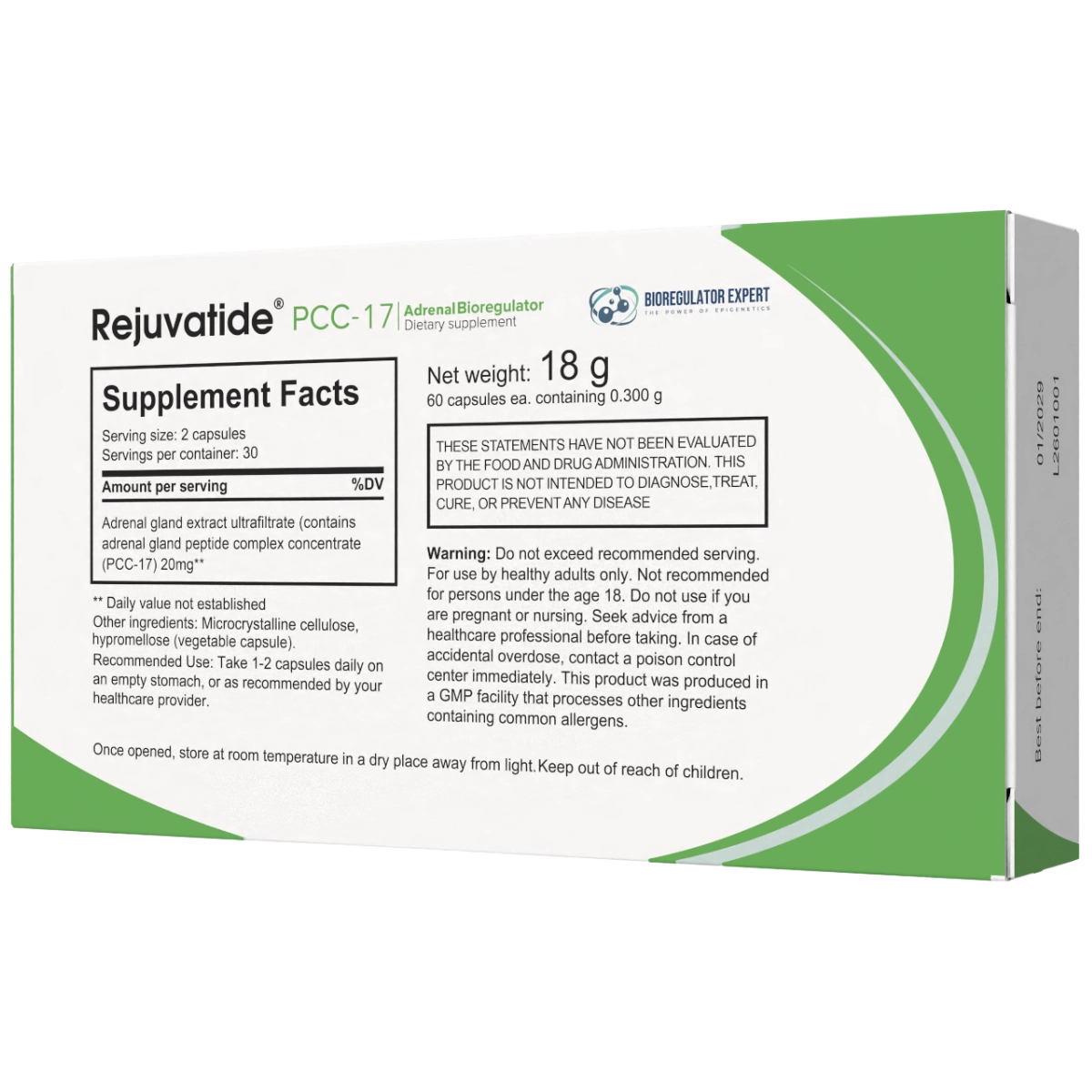 PCC-17 is a dietary supplement featuring tissue-specific peptides derived from adrenal gland extract.