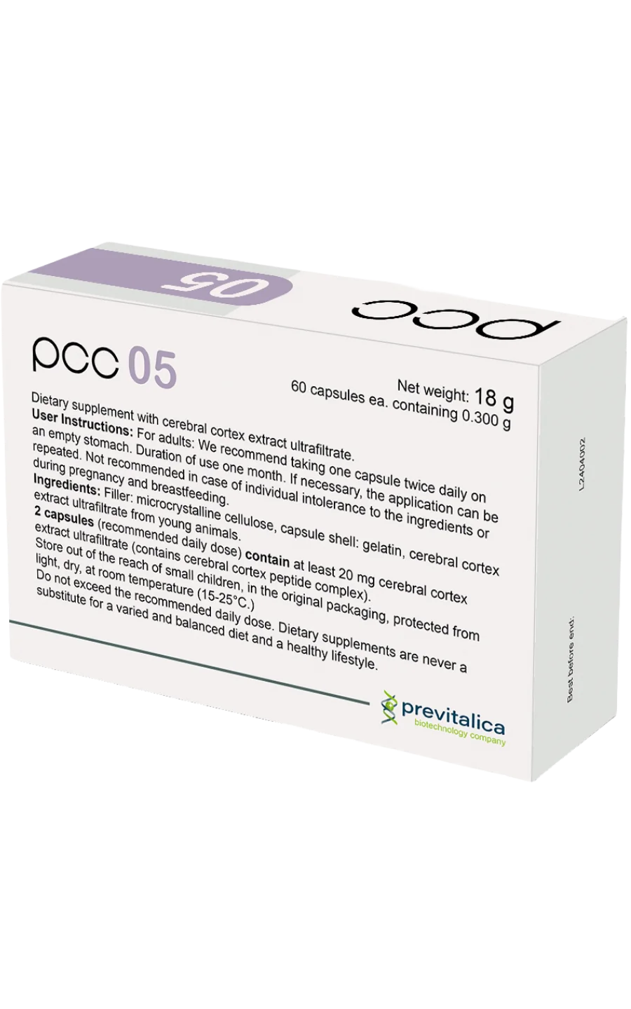 PCC-05 is a capsule-based dietary supplement that includes peptides derived from Cerebral gland extract. It is part of a peptide-formulated product line and is intended for adult use as part of an individualized supplement regimen.