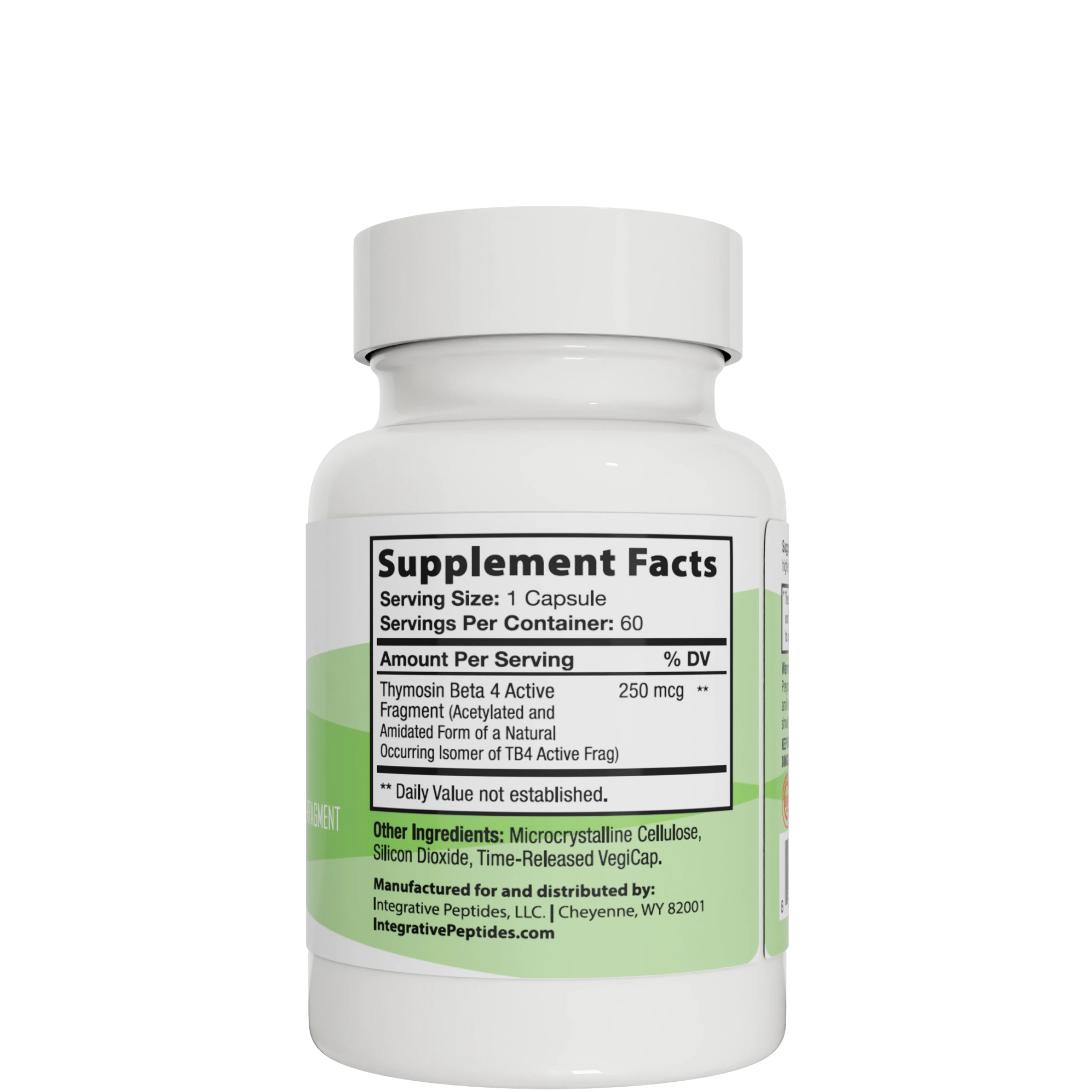FRAG is formulated with a specific active fragment of Thymosin Beta 4, supplied in microgram amounts and delivered in a delayed-release vegetable capsule.