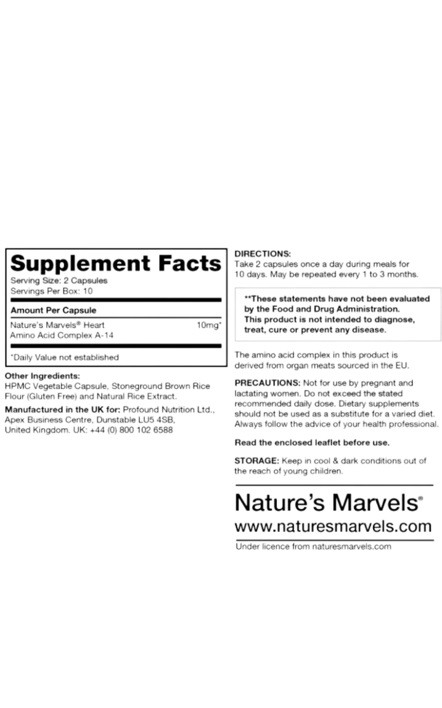 The Amino Acid complex in this product is derived from organ meats sourced from extract from the heart of young animals.