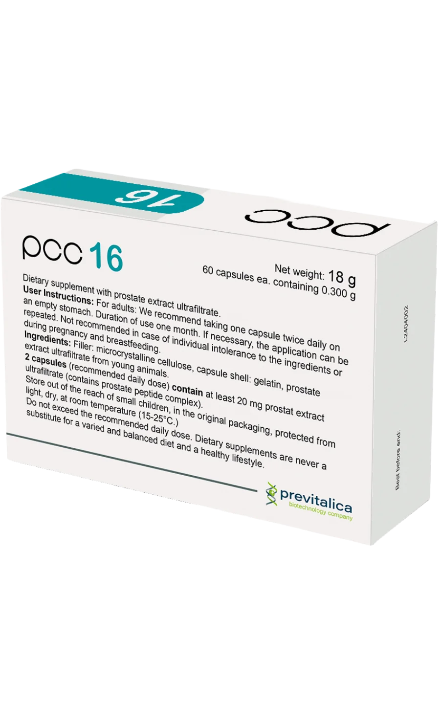 PCC-16 is a dietary supplement offered in capsule form. It contains a peptide complex derived from ultrafiltrated Prostate gland extract and is part of a peptide-based product line formulated for adult use.